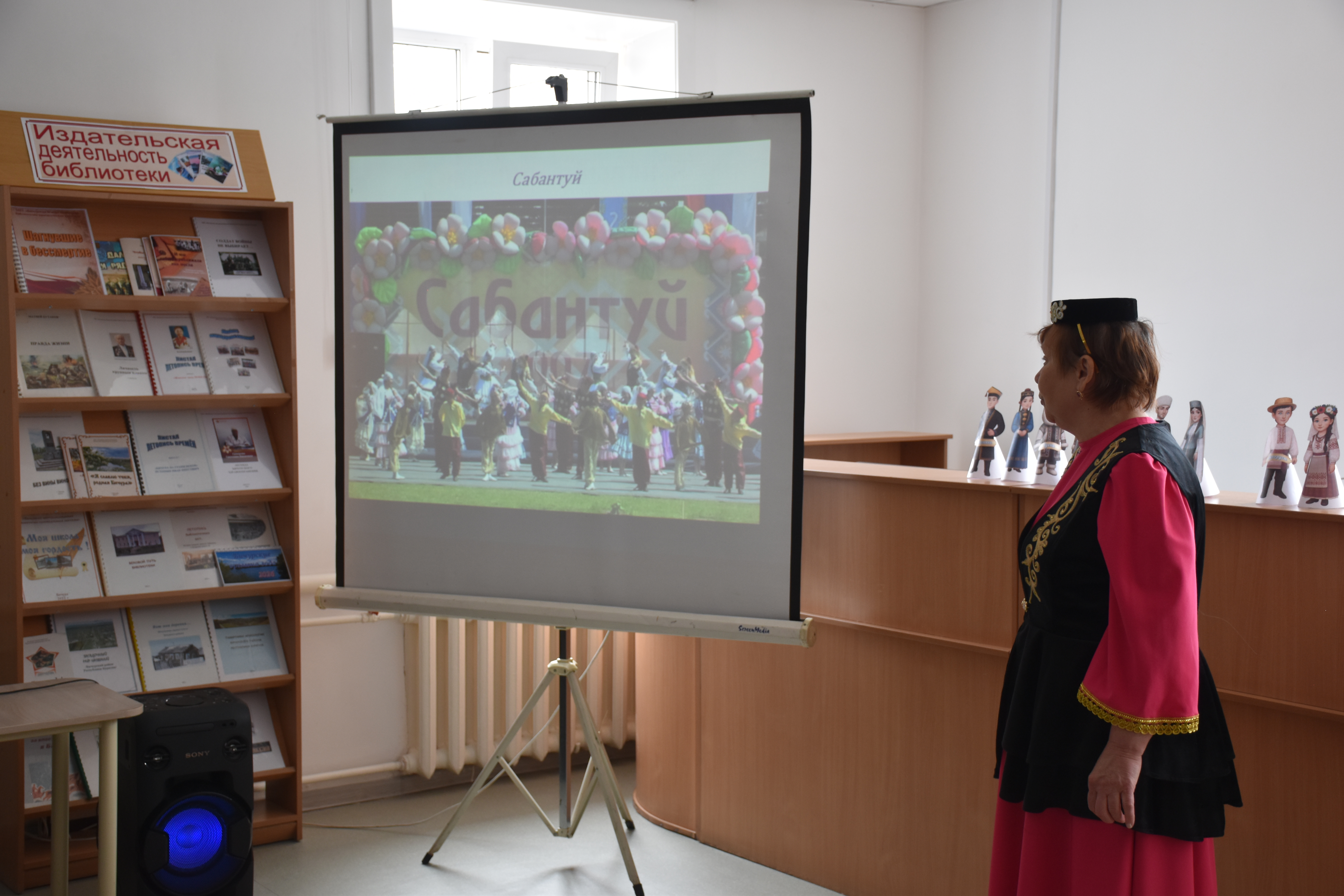 В отделе обслуживания гости услышали рассказ о татарской культуре от руководителя ТОС «Куналейские узоры» Фании Ахкиямовны Гареевой.